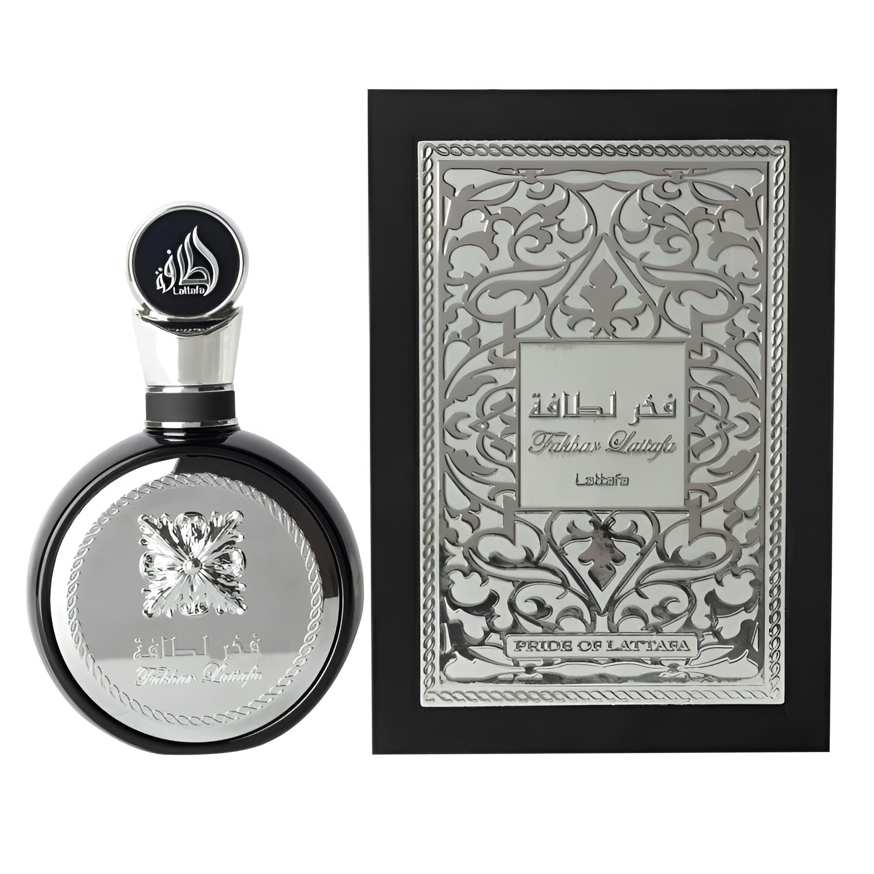 Presented in a black bottle with silver accents and a luxurious engraved box, Fakhar Black exudes strength, class, and presence.
